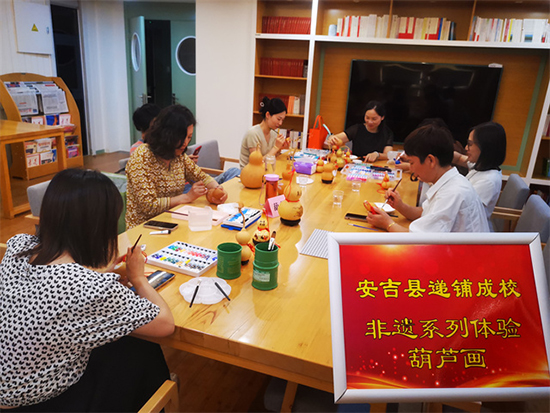 9月27日晚,安吉縣社區(qū)教育學(xué)院遞鋪分院組織開展非遺葫蘆畫體驗活動,來自轄區(qū)內(nèi)各個村、社區(qū)有著濃厚興趣的市民參加了本次活動,邀請了安吉縣非遺葫蘆畫傳承人蔣仙賢授課。據(jù)悉,本次非遺葫蘆畫體驗活動是學(xué)校“新時代市民夜校”第五期非遺體驗系列活動之一,11個非遺體驗項目分別是非遺糖畫、非遺石頭畫、非遺棕葉編、非遺葫蘆畫、非遺漆扇、非遺傳統(tǒng)制香、非遺龍王年畫、非遺捏面人、非遺竹編、非遺紙扎燈籠、非遺彩帶。