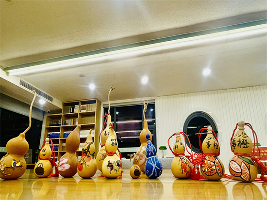 一位學(xué)員拿著自己畫好的葫蘆作品,開心地說道:“第一次嘗試在葫蘆上畫畫,還是很有趣的一次體驗。看到自己的成果還是很有成就感的。”