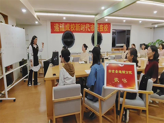 10月8日晚,安吉縣社區(qū)教育學(xué)院遞鋪分院組織開展唱歌培訓(xùn),來自轄區(qū)內(nèi)各個村、社區(qū)的20多位學(xué)員參加了本次培訓(xùn),邀請了安吉縣小學(xué)音樂教研員肖宵老師授課。