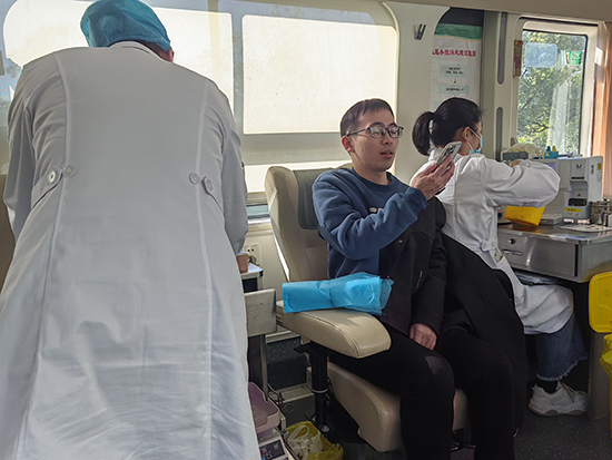 一向開朗而富有愛心的余玲老師與幾個小年輕一起到采血車上準備獻血。她說:“自從參與了‘應急救護’活動后,我更認識到了‘獻血’‘獻造血干細胞’的必要,想想那些處于生死邊緣急需用血的鮮活生命,我就覺得肩頭有沉甸甸的壓力,我認為‘獻血’應該是每個公民的責任與義務;能夠順利參加獻血活動是一種光榮,說明身體健康嘛。每年獻血車來我們學校,走進獻血車獻血已經成了我的本能!”作為一個“浙江省二級救護師”,余玲老師比普通人更明白“獻血”的意義。