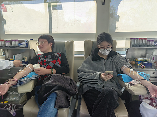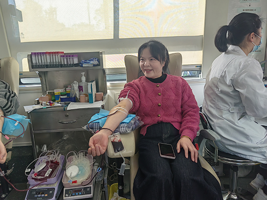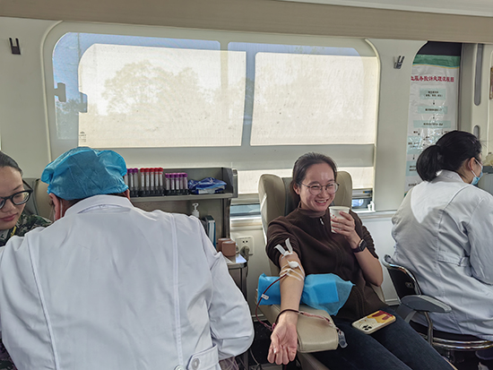 11月29日上午,在諸暨職業教育中心工會的精心安排積極組織下,諸暨職教中心教職工又一次集中在學校南大門廣場獻血車上踴躍參與獻血活動。特別是年輕教師和后勤宿舍管理的年輕教官們,好幾個一上來就獻血400CC。看著年輕的熱血從手臂汩汩流向一只只采血袋,讓人更多地看到了青春的活力和無私的奉獻精神。