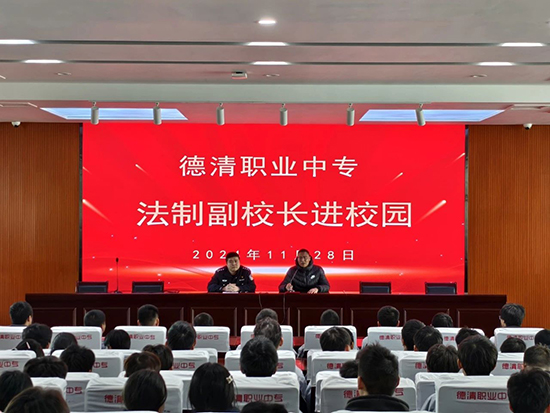 為增強學生法制觀念,引導他們樹立正確的法律意識,11月28日下午,德清職業中專邀請武康派出所副所長、德清職業中專法制副校長沈家昀來校開展法制講座。講座由政教處處長鄧志民主持,學校汽修、電商、會計等專業200名學生聆聽講座。