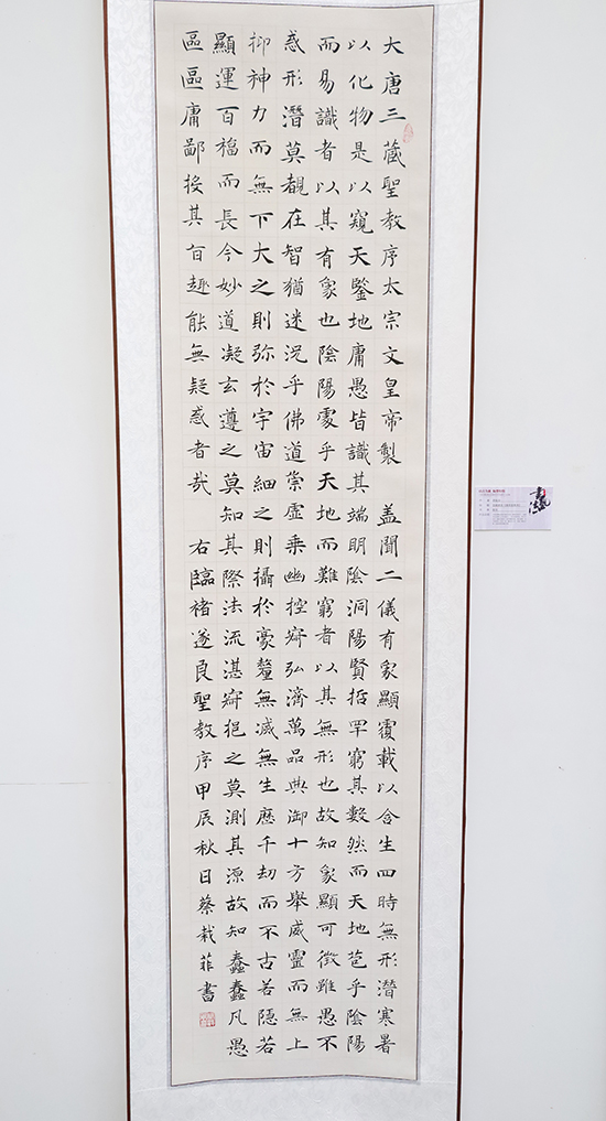 本次書法展的展覽時間為12月3日至12月13日,是墨間書法工作室匠心獨運,引領學生書法社團不斷精進、勇攀藝術高峰的結晶。展覽共展出了工作室老師和書法社學生的三十多幅書法作品。師生們取法古人,慕追經典,篆、隸、楷、行、草五體紛呈,各領風騷。這些作品不僅彰顯了筆墨之韻,更映射出“一生一技,一生一藝”的教育深意。