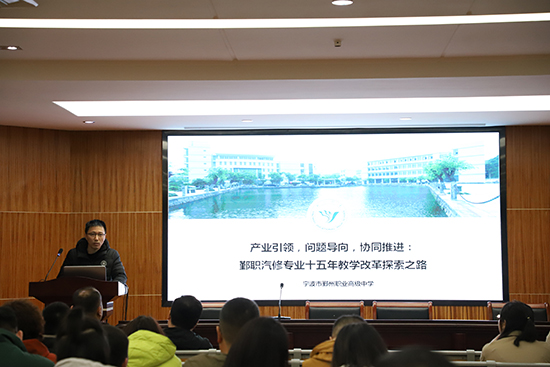接下來,省特級教師、正高級教師王瑞君老師為考察團帶來了“產(chǎn)業(yè)引領(lǐng),問題導(dǎo)向,協(xié)同推進:鄞職汽修專業(yè)十五年教學改革探索之路”主題講座,圍繞專業(yè)基本情況、教學改革成果、教學改革歷程、教學改革途徑、推廣應(yīng)用效果五個方面,分享了學校汽修專業(yè)多年來的課改成果。