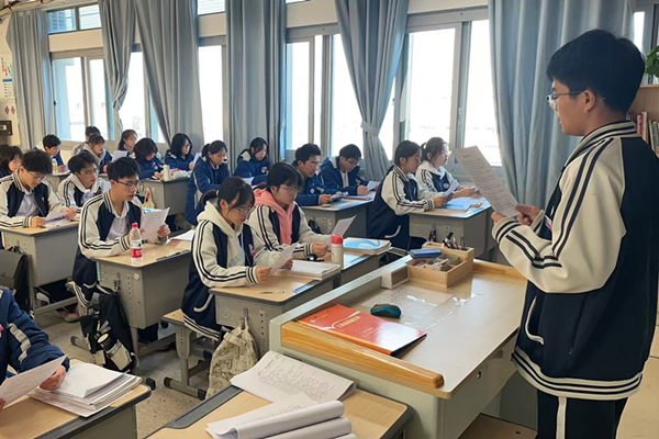 “憲法是國家的根本大法,是治國安邦的總章程,具有最高的法律地位、法律權威、法律效力……”在班級領讀員的帶領下,同學們精神飽滿,情緒高昂,齊聲朗讀憲法條文,通過反復誦讀,加深對憲法內容的理解和記憶,朗讀聲回蕩在校園的每一個角落。