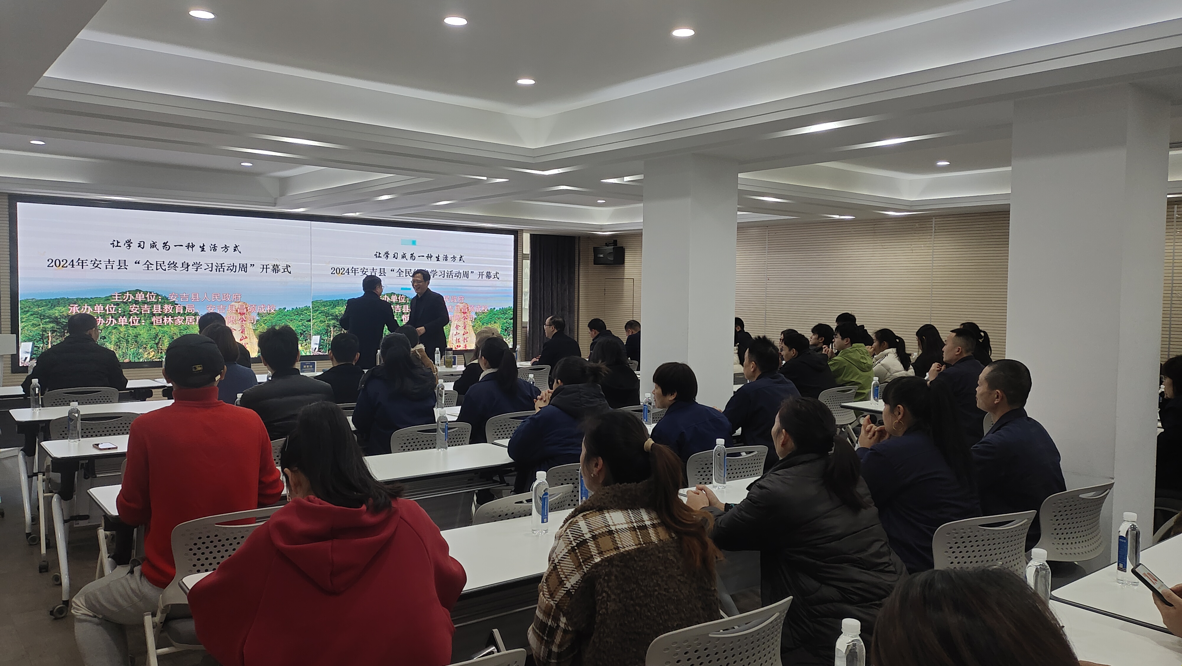 為深入貫徹黨的二十大和二十屆三中全會精神,落實建設全民終身學習的學習型社會要求,2024年安吉縣全民終身學習活動周開幕式于12月10日在恒林家居股份有限公司舉行。本次活動由安吉縣人民政府主辦,安吉縣教育局和昌碩成校承辦,恒林家居股份有限公司協辦。活動以“讓學習成為一種生活方式”為主題,旨在推動全民終身學習理念的普及與實踐。