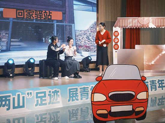 為使宣講內(nèi)容更具針對性和吸引力,此次挑戰(zhàn)賽設(shè)置有云廊集中研學(xué)、蹲點(diǎn)調(diào)研及集體創(chuàng)作磨課等環(huán)節(jié),舟職青年宣講員章馨尹所在的團(tuán)隊(duì)先后前往長白后岸余家古村、三毛文化村等地實(shí)地調(diào)研,在為期半月的小組創(chuàng)作中,將后岸余家古村在云廊建設(shè)中由閉塞古村到年輕人引流地的蝶變故事演繹為小品,并最終搬上舞臺。“這是一次非常特別的宣講,不只有黨的科學(xué)理論,還有‘老伯修兒子的回家路’‘外地小伙堅(jiān)守書店’等真實(shí)鮮活的故事。我們用‘小品’在講述的時候也覺得更加‘走心’。”章馨尹賽后分享。