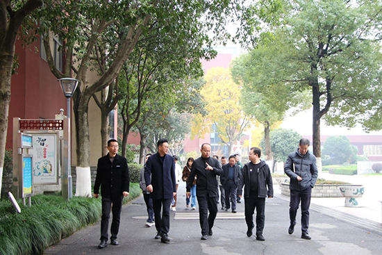 隨后,在行政樓五樓會議室,校黨委書記周國林發表了歡迎辭,并作了題為《弘揚蓮文化,賡續匠情懷》的報告。周書記詳細介紹了學校的基本情況和發展目標,重點分享了學校在人才培養、校企合作和產教融合方面的成功經驗。期間,雙方還就高考和技能競賽如何兩手抓、兩手都硬的問題進行了深入交流。