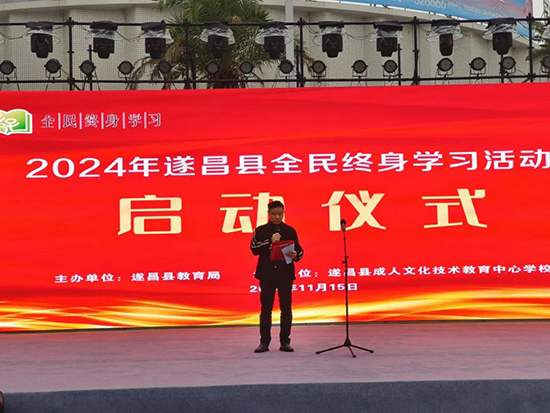為深入推動學習型城市建設,積極引導廣大群眾樹立全民終身學習理念,11月15日上午,2024年遂昌縣全民終身學習活動周啟動儀式在江泰領悅廣場舉行。副縣長朱與濱出席儀式。