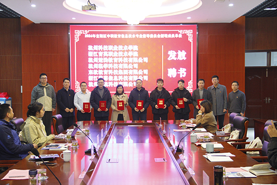 為全面深化校企合作、促進產教融合,加快信息技術人才培養與數字產業發展相匹配,共同提升專業建設水平和人才培養質量。12月11日,杭州市富陽區中等職業教育信息技術專業指導委員會會議在富陽區職業教育中心九樓報告廳順利召開。本次會議的主題是“校企雙向奔赴,產教協同育人”。富陽區經濟和信息化局數字經濟科科長方晨晨、杭州科技職業技術學院物聯網技術學院院長楊悅梅、副書記何劍敏、杭州市電子信息職業學校正高級教師、副校長佘運祥、浙江育英職業技術學院網絡專業負責人易明升、富陽區職教中心校長夏峰巍和副校長章文泉等領導出席會議。本次會議由信息技術專業部副部長徐揚程主持,另有十余家校企緊密合作企業代表與會。