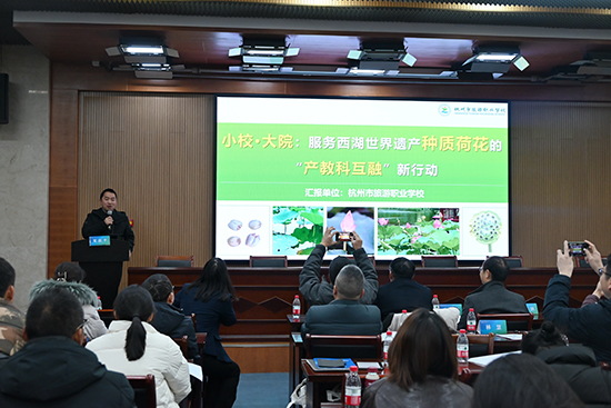 杭州市旅游職業(yè)學(xué)校夏嘉平以《小校大院:服務(wù)西湖世界遺產(chǎn)荷花種質(zhì)資源的產(chǎn)教科互融新行動》為題作分享。湖州市現(xiàn)代農(nóng)業(yè)技術(shù)學(xué)校鄒琴作《生態(tài)融入 產(chǎn)教融合 科教融匯:中職涉農(nóng)專業(yè)“三融五生四匠”人才培養(yǎng)探索實(shí)踐》專題講座。杭州市蕭山區(qū)第二中等職業(yè)學(xué)校林靜作《從技能操練到技創(chuàng)研發(fā):服務(wù)新舊動能轉(zhuǎn)換的涉農(nóng)職校專創(chuàng)融合育人新探索》專題講座。仙居縣職業(yè)中專泮玲嬌作《產(chǎn)教聯(lián)動·群鏈融合·五梅共育:楊梅產(chǎn)業(yè)集群技能型人才培養(yǎng)實(shí)踐探索》專題講座。他們分別從不同角度進(jìn)行農(nóng)經(jīng)專業(yè)課改成果方面的交流。