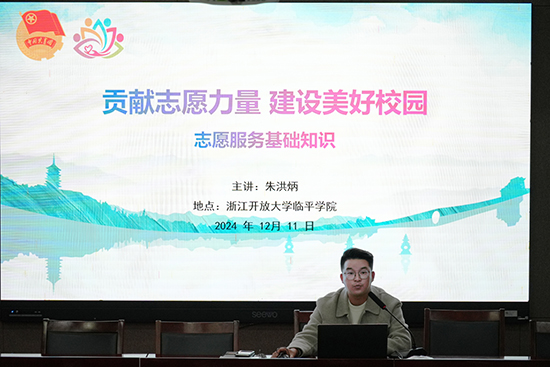 12月11日中午,浙江開放大學臨平學院202411期業余團校于清蓮廳一樓報告廳開啟了首次團課——“貢獻志愿力量 建設美好校園”。本次團課由杭州志愿者培訓師、院團委副書記朱洪炳老師主講,業余團校233位學員及2022級團總支委員、大一和高一年級各團支部書記共同參與。
