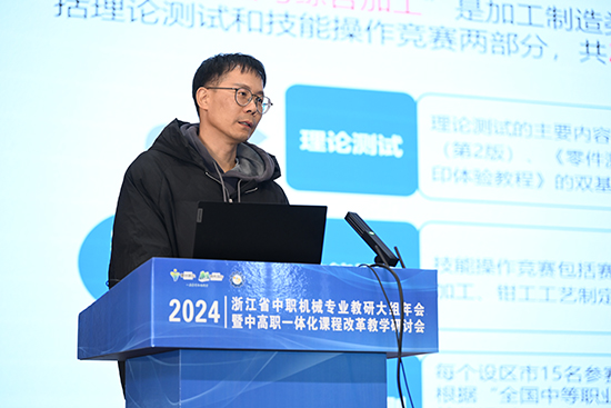 最后,省機(jī)械專業(yè)教研大組理事長單位溫嶺市職業(yè)技術(shù)學(xué)校副校長、正高級講師王崗以“指向‘新課改’中職機(jī)械專業(yè)面向人人技能競賽趨勢”為題作了主題報(bào)告。他結(jié)合當(dāng)前中職機(jī)械專業(yè)教育的實(shí)際情況,深入分析了新課改下中職機(jī)械專業(yè)面向人人技能競賽的趨勢和挑戰(zhàn),為與會者提供了關(guān)于中職機(jī)械專業(yè)教育改革的新思路和建議。