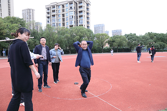 測試項目豐富多樣,全校教師按照45周歲上下年齡段分為壯年一組和壯年二組,其中壯年一組測試項目為:30秒跳繩、800米跑(女)/1000米跑(男)、立定跳遠、繞桿跑和坐位體前屈;壯年二組測試項目為:30秒跳繩、3000米快走、擲實心球、繞桿跑和坐位體前屈。