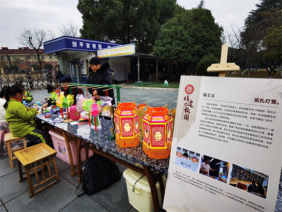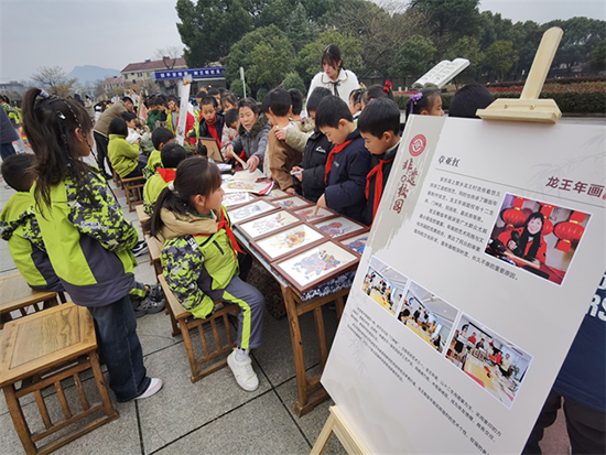 棕葉在傳承人手中上下翻飛,片刻間便化作一只只靈動的昆蟲、精巧的花朵,棕葉編的奇妙讓孩子們驚嘆不已;竹條在竹編藝人的指尖靈活穿梭,編織出精致的容器和圖案,那細膩的工藝彰顯著竹鄉(xiāng)的智慧;葫蘆上筆走龍蛇,一幅幅色彩斑斕、寓意吉祥的葫蘆畫誕生,承載著古老的民俗風情;剪刀開合,紙屑紛揚,剪紙藝人手中的紙變幻成各種喜慶的圖案,訴說著民間的故事;面團在捏面人師傅的巧手下,變成了栩栩如生的人物和動物,仿佛被賦予了生命;年畫藝人用鮮艷的色彩和古樸的線條,勾勒出充滿年味的畫面,傳遞著新春的祝福;茶果子散發(fā)著淡雅的茶香和甜香,展現(xiàn)著獨特的地方風味;糖畫師傅以勺為筆,以糖為墨,繪制出晶瑩剔透的甜蜜童話;紙扎燈籠照亮了非遺傳承的道路,糊紙、繪畫、裝飾,每一步都蘊含著匠心;畬族彩帶編織著民族的記憶,絢麗的色彩和復雜的花紋交織出獨特的文化符號。這些非遺項目宛如一扇扇通往傳統(tǒng)文化寶庫的大門,讓孩子們得以一窺其中的奧秘,也讓中國故事在校園里鮮活起來。