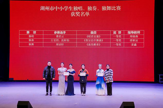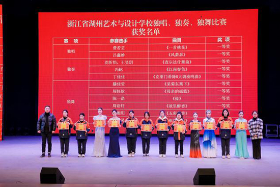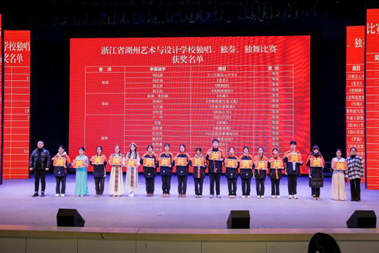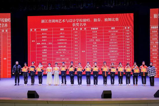 在浙江省湖州藝術(shù)與設計學校獨唱、獨奏、獨舞比賽校級選拔中,共有56個節(jié)目獲獎,本次美育展示活動共遴選出4組代表性選手參加現(xiàn)場展示。同學們用精湛的技藝展現(xiàn)出她們的卓越才華,彰顯了學校美育浸潤的豐碩成果。