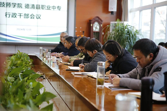 12月20日下午,湖州市技師學院、德清縣職業(yè)中專行政干部會議在職業(yè)中專召開。縣教育局黨委委員、縣職業(yè)教育黨委書記、湖州市技師學院黨總支書記潘強,縣教育局黨委委員、縣職業(yè)教育黨委副書記、湖州市技師學院院長、德清縣職業(yè)中專校長董國偉出席會議,兩校處室和系副職及以上行政人員參加。