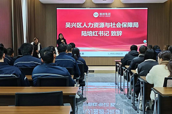 12月7日下午,旗創集團新型學徒制培養項目在公司多功能廳正式開班。吳興區人力資源和社會保障局副書記、副局長陸培紅,職業能力建設科技能業務干部劉得波,浙江信息工程學校·湖州工程技師學院黨委委員、副校長褚劍飛,培訓處處長馮玉如,以及旗創集團人事總監施露與50余位參訓學員,共同見證這一重要時刻。儀式上區人社、學校以及企業三方領導分別致辭。陸培紅著重強調高素質技能人才的重要性,指出在激烈的市場競爭下,企業發展需要高素質、高技能的人才隊伍支撐,新型學徒制能緊密結合知識與實踐,精準培養契合生產需求的人才,助力企業產業升級與高質量發展。褚劍飛代表學校感謝旗創集團的合作與信任,期望校企以此次開班為契機,加強協作,完善方案,優化過程,克服困難,齊心協力,把項目做實、做好、做出成效,打造示范樣板。施露鼓勵學員熱情投入培訓,平衡好工作與學習,學以致用提升技能,為企業發展貢獻力量。