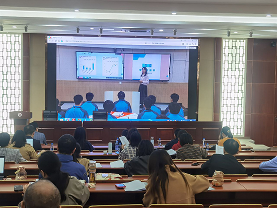 全體參訓人員首先在樂學樓鼎建大講堂,采取遠程線上觀課方式,聽取徐燕老師的《繪制剖斷面圖》一課。徐老師結合多年教學實踐經驗,將全剖面圖和移出斷面圖作為基本的探究對象組織教學,對課程內容進行重構嘗試。借助信息化、數字化技術,采用情境設計、實驗導入、動畫探究、動手實踐、職業體驗等方式,啟發、引導學生完成帶扶手臺階的剖面圖和斷面圖的繪制探究。通過角色扮演法,讓學生體驗建筑行業審圖員工作并及時檢測教學目標達成度。巧妙的教學方法運用,讓學生在實踐中發現問題、分析問題和解決問題,并培養學生的工程思維,增強學生的職業認同感。