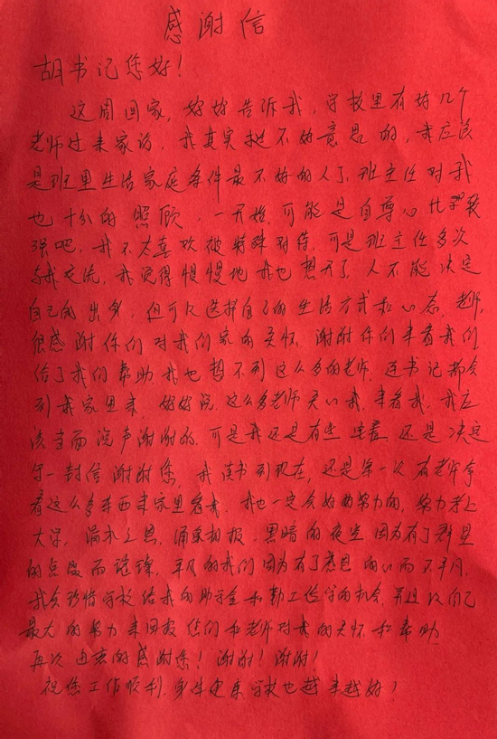 該校黨委書記胡贊帶頭來到困難學子家中,當看到一家四口蝸居在緊鄰父母菜地的簡易大棚中,僅擁有兩間狹小的房間用于居住,而日常做飯與如廁則需在大棚之外的簡易設施中進行,他的心被深深觸動。他深知,教育的真諦,不在于傳授了多少知識,而在于滋養了多少心靈,點燃了多少夢想。他決心持續發力,堅定助力貧困學子成長,讓愛的陽光毫無保留地灑滿學生心間。