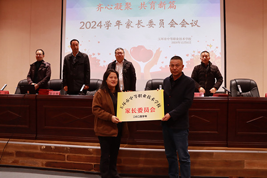陳順宇授“2024學年玉環市中等職業技術學校家長委員會”牌。