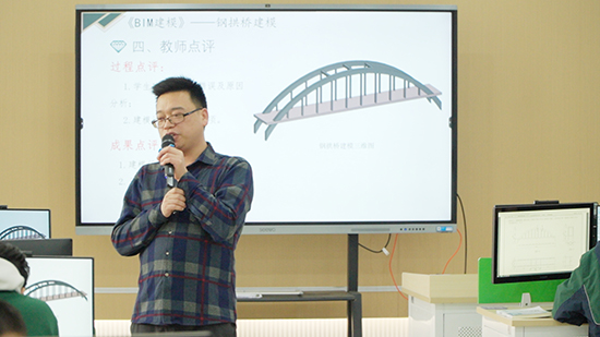 柯老師的這堂課精準聚焦鋼拱橋主拱圈、吊桿等建模難點,多環(huán)節(jié)強化,教師示范糾錯,有效突破學(xué)習(xí)瓶頸。實現(xiàn)讓學(xué)生在“做中學(xué)”,將理論知識轉(zhuǎn)化為實際操作,提升運用 BIM軟件進行復(fù)雜構(gòu)件建模的熟練度,掌握不同構(gòu)件的建模技巧。