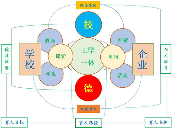 “工學(xué)一體,雙元雙導(dǎo),德技雙馨”人才培養(yǎng)模式架構(gòu)圖