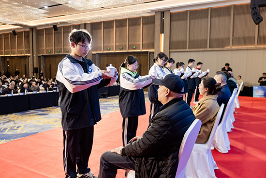 隨后,一場(chǎng)莊重的拜師禮在眾人的矚目下舉行。學(xué)生們向師傅們深深鞠躬,并敬上一杯清茶,以傳統(tǒng)的禮儀表達(dá)了對(duì)師傅的尊敬和感激之情。師傅們則回以精心準(zhǔn)備的禮物以及溫暖的笑容和鼓勵(lì)的話語(yǔ),為徒弟們加油打氣。