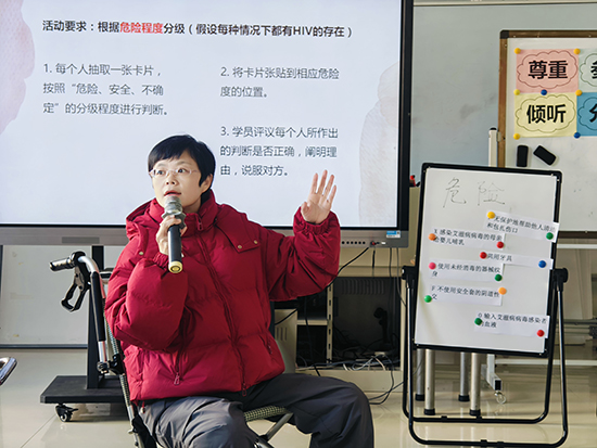 在青春健康同伴社活動(dòng)室里,一系列精彩紛呈且極具教育意義的培訓(xùn)課程有序開展。在“了解艾滋病”環(huán)節(jié),社員們圍坐在一起,深入探討艾滋病的相關(guān)知識(shí),從病毒的特點(diǎn)到傳播的途徑,再到有效的預(yù)防措施,每一個(gè)知識(shí)點(diǎn)都在熱烈的討論中被剖析得淋漓盡致。