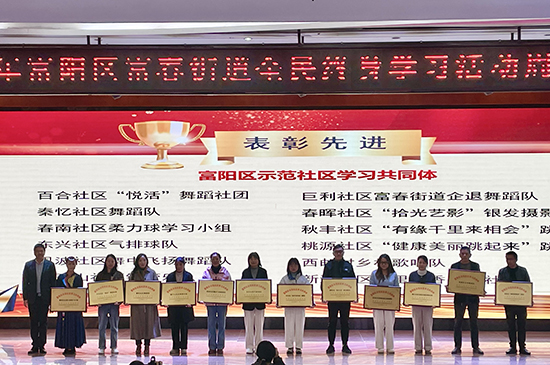 大會在區職教中心校長夏峰巍歡迎辭中拉開帷幕。富陽區富春街道人大工委副主任華森洪宣布“富春街道全民終身學習活動周”啟動。啟動儀式上,對2024年獲得富春街道、富陽區、杭州市及以上各級各類獎項的單位和個人進行了表彰并頒獎。其間,富春街道老年(企退)學校學員進行了秋季學期教學成果匯報展演,為我們帶來了藏舞、柔力球、時裝秀、太極功夫扇、合唱等節目,讓觀眾忍不住為他們的驚艷演出而喝彩,他們的表演是對生命熱度的最好詮釋,展現了歲月沉淀的生命力和風采,更彰顯了富春街道老年(企退)學校的優質教學實力。