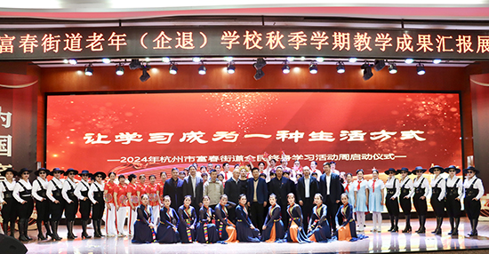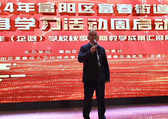 11月29日上午,2024年富春街道全民終身學習活動周啟動儀式暨富春街道老年(企退)學校秋季學期教學成果匯報展演在區職教中心舉行。富陽區教育局調研員吳乾、富陽區富春街道人大工委副主任華森洪、富陽區教育局教育科副科長許棋棋、富陽區富春街道公共服務辦公室俞正華、富陽區社區學院副院長吳凌華、富陽區職業教育中心黨委書記劉忠明、富陽區職業教育中心校長夏峰巍,以及富春街道所屬村(社區)負責人、文化員,富春街道老年(企退)學校老師、學員參加活動。