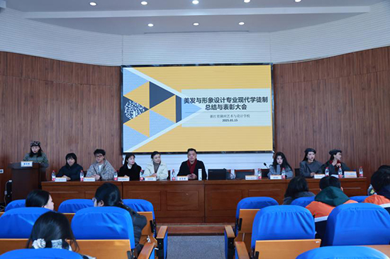 1月15日,浙江省湖州藝術(shù)與設(shè)計(jì)學(xué)校美發(fā)與形象設(shè)計(jì)專業(yè)現(xiàn)代學(xué)徒制總結(jié)與表彰大會(huì)舉行,學(xué)校領(lǐng)導(dǎo)、合作企業(yè)代表、美容美發(fā)專業(yè)教師及2319班全體師生參加。