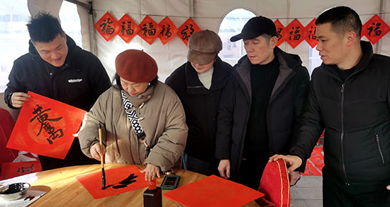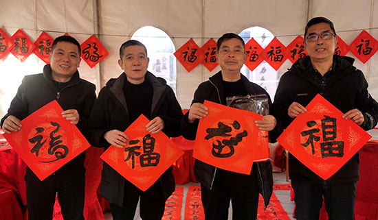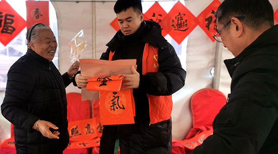 與此同時,寫春聯送福的活動也備受矚目。四位錦湖社區學校的老師與社區里的書法愛好者們齊聚一堂,揮毫潑墨,書寫著一副副對仗工整、寓意吉祥的春聯。居民們圍在旁邊,欣賞著書法藝術的魅力,精心挑選著心儀的春聯。不少居民還現場定制春聯,讓書法家們寫下心中對新年的美好祈愿。拿到春聯和“福”字的居民們如獲珍寶,紛紛表示要將這份美好的祝福帶回家,貼在門上,祈愿新的一年家庭幸福美滿、諸事順遂如意。