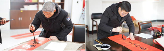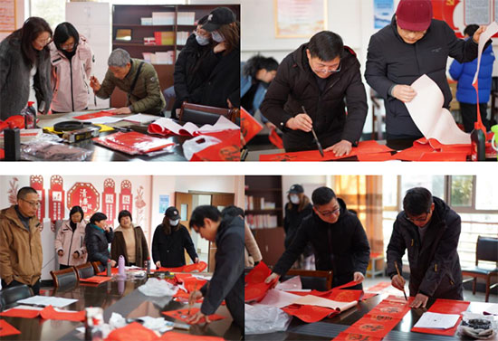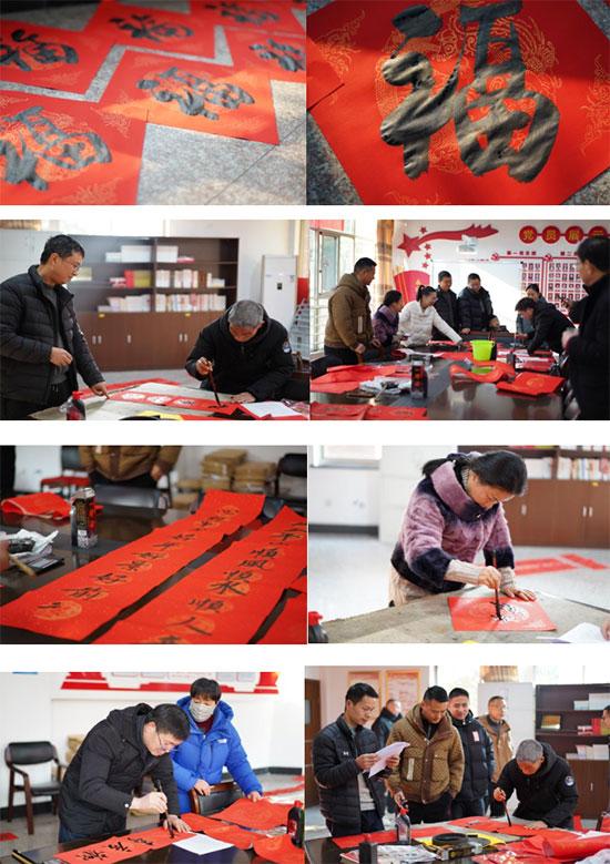 活動現場,墨香四溢,其樂融融。一張張大紅宣紙平整鋪展,老師們蘸墨揮毫,筆勢流動,一個個年味滿滿的“福”字,或蒼勁有力、古樸典雅,或一氣呵成、意趣天成,讓人嘆為觀止,引人嘖嘖稱贊。“國泰民安逢盛世,風調雨順頌華年”“喜居寶地千年旺,福照家門萬事興”,一幅幅寓意吉祥、喜氣十足的春聯,無不傳遞出祝福,溫暖著人心。老師們手捧著春聯,互相歡聲交談,致以新春的祝福,一同暢想學校新一年即將開啟的美好篇章。