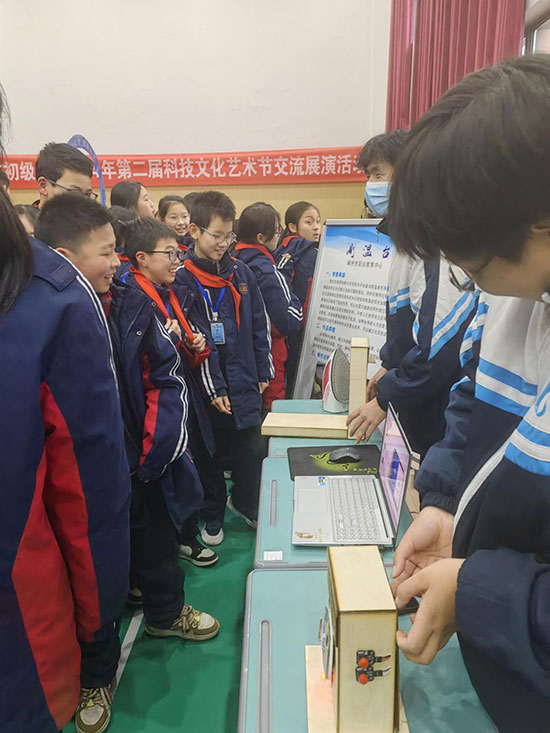 團(tuán)隊(duì)成員們?yōu)槌跫?jí)中學(xué)的學(xué)生和老師們展示了自己研發(fā)的智能項(xiàng)目,引來(lái)了現(xiàn)場(chǎng)的熱烈反響和濃厚興趣。這些項(xiàng)目均融合了人工智能技術(shù),在展示過(guò)程中,團(tuán)隊(duì)成員詳細(xì)介紹了智能項(xiàng)目的功能和應(yīng)用場(chǎng)景。該項(xiàng)目包括智慧農(nóng)場(chǎng)甲烷合理應(yīng)用、廚房寶寶——智能煤氣報(bào)警裝置等等。學(xué)生們紛紛圍攏過(guò)來(lái),好奇地觀看著演示,不時(shí)發(fā)出驚嘆聲。