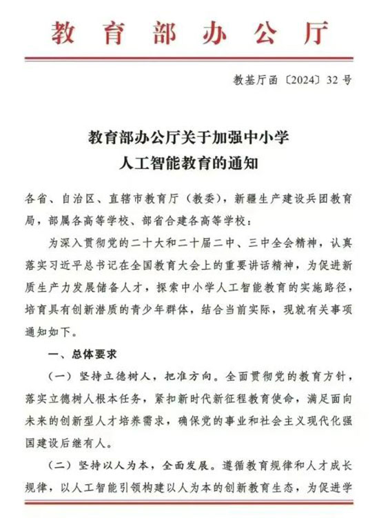 教育部近日印發(fā)了關(guān)于加強(qiáng)中小學(xué)人工智能教育的通知,旨在推動(dòng)人工智能教育在中小學(xué)階段的普及和發(fā)展。
