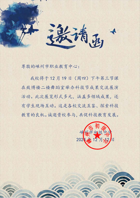 12月19日,應(yīng)嵊州市初級(jí)中學(xué)邀約,學(xué)校科創(chuàng)團(tuán)隊(duì)進(jìn)初級(jí)中學(xué)進(jìn)行展示交流活動(dòng)。