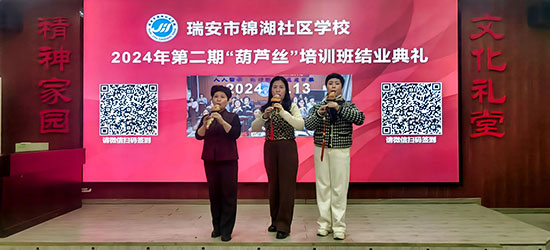 隨著最后一個(gè)音符落下,本期葫蘆絲培訓(xùn)正式畫上圓滿句號(hào)。這場(chǎng)結(jié)業(yè)典禮不僅是對(duì)學(xué)員們學(xué)習(xí)成果的肯定,更是對(duì)他們未來藝術(shù)之路的美好期許。相信在瑞安市錦湖社區(qū)學(xué)校的大力支持和劉明明導(dǎo)師的專業(yè)引領(lǐng)下,這些熱愛葫蘆絲藝術(shù)的學(xué)員們將繼續(xù)在音樂的道路上砥礪前行,創(chuàng)造更加輝煌的成績(jī),為葫蘆絲藝術(shù)的傳承與發(fā)展注入新的活力。(張?jiān)僖妫?/p>