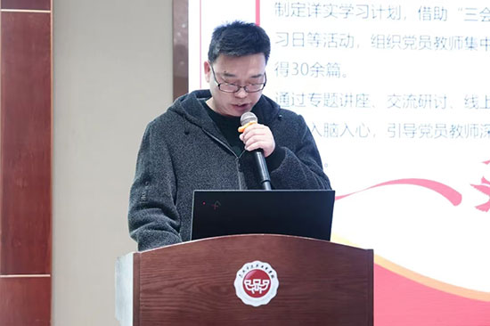 學校黨委書記范曉春作2024年度黨建工作總結。從深化“四足立鼎”黨建主品牌、強化“三學三思”學習輔品牌和打造“四色四清”清廉輔品牌三個方面,匯報了學校黨委通過積極塑造兼具職教特色、專業亮點及文化底蘊的黨建品牌體系,扎實推進黨組織領導的校長負責制,黨建引領推進校園文化建設、人才培育、師資發展、產教融合等各方面的工作情況。她結合學校新一年重點工作規劃,對各支部2025年的工作提出了三點要求:一是“榫卯筑頂”,完善頂層設計,優化支部管理黨員形式,提升支部治理質效;二是“術業砼柱”,創新合作交流,拓展支部互助共建渠道,凝聚黨建發展合力;三是“畫棟雕梁”,增加考評體系,激勵全體黨員擔當作為,彰顯多元內涵素養。