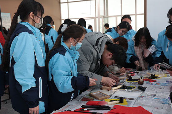 在現場工作人員的指導下,師生們還親身體驗了拓印技藝,感受非遺傳統(tǒng)文化的魅力。新年拓福,以拓為靈,大家選擇自己喜歡的模具,輕輕按壓,墨色緩緩滲透紙張,一筆一畫都承載著對未來的美好憧憬。