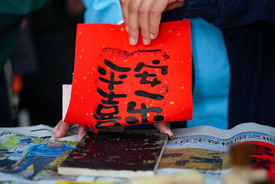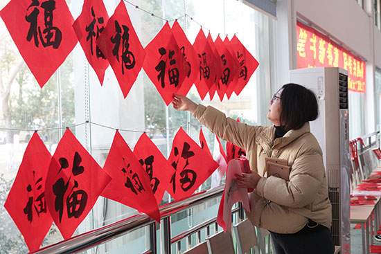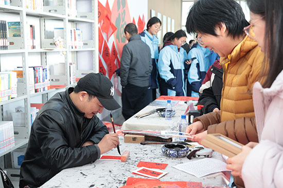 活動現場書香四溢,“年味”十足,一條條長隊有序排開。送“福”字的書法大家以及書法社團老師們以墨筆作媒,以墨字傳情,提筆凝神,在紅紙上揮斥方遒,筆走龍蛇,一橫一豎、一撇一捺,從傳統(tǒng)的楷書到飄逸的行書,一句句工整的妙聯(lián)、一個個飽含祝福的“福”字,不僅展現了書法藝術的魅力,更寄托著大家對新的一年幸福生活的殷切期盼。