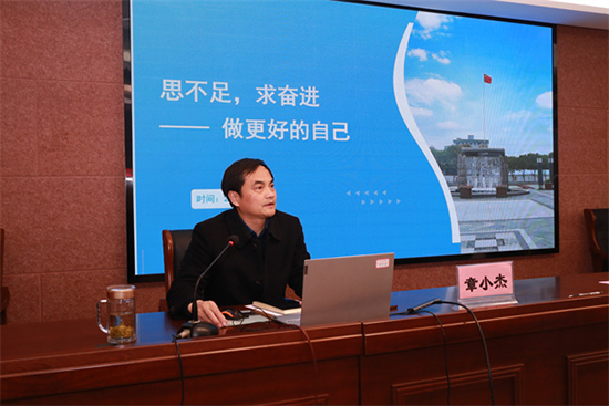 章書記強調,學院在發(fā)展的同時,還存在著困境與不足,需要我們常反思,求奮進,做更好的自己。他深入闡釋了“思不足”“求奮進”的概念意義、理論基礎、內涵理解、方法工具和具體情況,指出新學期,學院要建立科學管理的新機制,注入發(fā)展保障的新動力,提升隊伍專業(yè)的新高度,打造培訓高質的新境界,樹立學院發(fā)展的新品質。開放教育要切實深化教育改革創(chuàng)新,教學管理強變革,思政工作增活力,業(yè)務比賽提檔次,招生規(guī)模重拓展。師訓教育要始終以專業(yè)、負責的態(tài)度,用心服務主管部門,匠心做好培訓項目,精心指導學校研訓,恒心做好品牌培育。社區(qū)教育要秉持“學習讓城市更美好”的學習型城市建設理念,進一步強化終身教育體系,優(yōu)化培訓項目,活化合作方式,孵化“一校一品”。