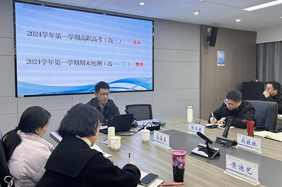 在會(huì)議第三項(xiàng)議程中,蔡際鈞對(duì)上學(xué)期各校高三高職高考班聯(lián)考情況進(jìn)行了分析解讀。他提出,各校應(yīng)關(guān)注專業(yè)發(fā)展、關(guān)注臨界生的個(gè)性輔導(dǎo)、充分研讀語(yǔ)數(shù)課標(biāo),并及時(shí)開展16個(gè)專業(yè)考綱的內(nèi)研外培,通過找突破、調(diào)專業(yè)、選苗子,實(shí)現(xiàn)各專業(yè)本科率的穩(wěn)步提升。隨后,蔡主任圍繞上學(xué)期高一、高二期末統(tǒng)測(cè)情況,通過關(guān)鍵名次、ABC檔增量、學(xué)科平均位次、A檔學(xué)科偏離情況等多個(gè)指標(biāo)在全市層面進(jìn)行了詳實(shí)的分析。他強(qiáng)調(diào),數(shù)據(jù)分析的本質(zhì)是需要深挖數(shù)據(jù)背后的問題,建議各校按“班級(jí)—學(xué)科—教師—學(xué)生”的思路逐級(jí)深入分析,再根據(jù)班級(jí)情況制定教學(xué)策略,有的放矢地開展各項(xiàng)舉措。蔡主任提出了做分析、明導(dǎo)向、抓落實(shí)三點(diǎn)工作建議,并針對(duì)新學(xué)期重點(diǎn)工作進(jìn)行了布置。