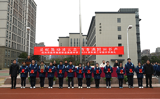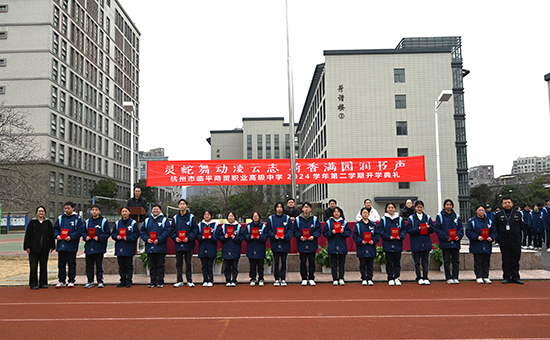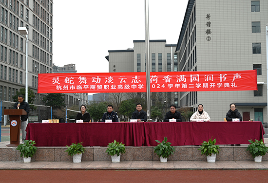 靈蛇獻(xiàn)福瑞,春來啟新程。2月17日下午,杭州市臨平商貿(mào)職業(yè)高級(jí)中學(xué)2024學(xué)年第二學(xué)期開學(xué)典禮在學(xué)校操場(chǎng)隆重召開,出席典禮的有校長沈琪、校黨委書記邵曉舟、法制副校長王必成、副校長陳勝瑩、副校長查文婷、副校長唐瑛。典禮由政教處主任方建衛(wèi)主持。