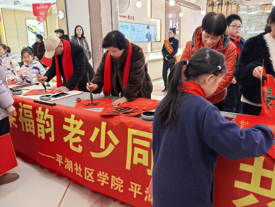 1月19日下午,平湖銀泰百貨一樓洋溢著濃厚的新春氣氛,一場由平湖市青少年宮主辦,浙江開放大學平湖學院(平湖社區學院)與平湖市李叔同紀念館協辦,平湖銀泰百貨、平湖19樓大力支持的“靈蛇納福”新春送福活動在此舉行。活動吸引了百余名市民前來參加,共同迎接新年的到來。
