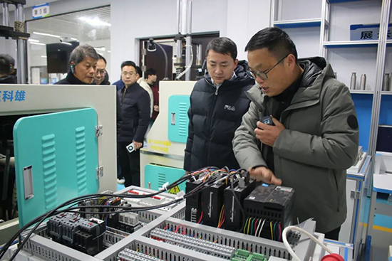 在工程實(shí)踐中心,考察團(tuán)實(shí)地走訪模具智能制造中心,認(rèn)真聆聽(tīng)了學(xué)生志愿者的詳細(xì)介紹,感受學(xué)校智能制造專業(yè)群與生產(chǎn)實(shí)踐的深度融合。隨后,考察團(tuán)參觀了世界技能大賽可再生能源項(xiàng)目中國(guó)集訓(xùn)基地,觀摩了智能裝備學(xué)習(xí)工作站和智能控制學(xué)習(xí)工作站。考察團(tuán)成員對(duì)學(xué)校“以賽促學(xué)、以產(chǎn)促教”的做法及成果表示高度認(rèn)可。