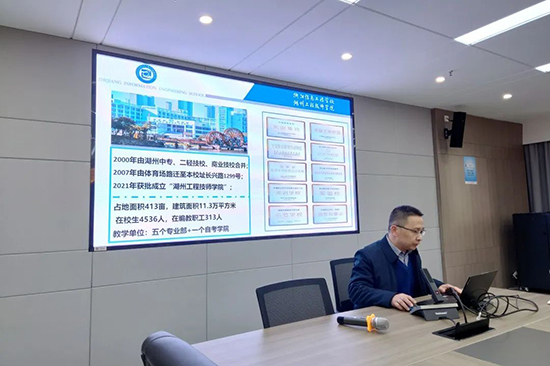 會上,浙江信息工程學校·湖州工程技師學院副校長湯方榮介紹了學校運動場改造項目的實施情況,特別呈現了融入“信息藍”元素的新運動場地,并陪同與會人員到現場進行了參觀。