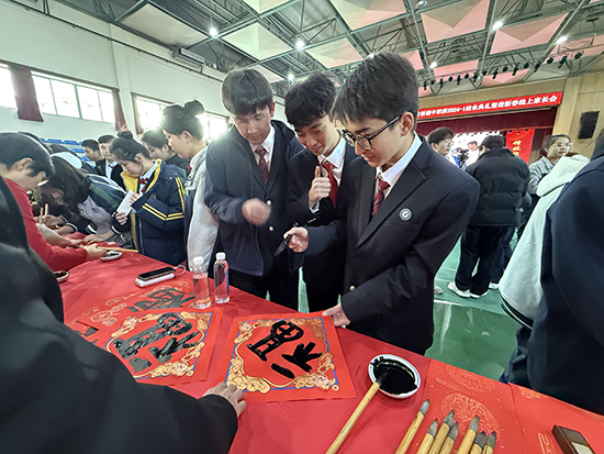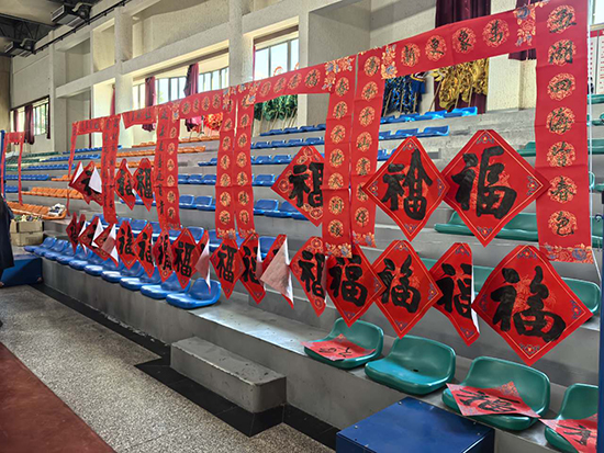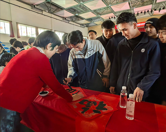 活動現場,紅紙鋪展、墨香縈繞、歡聲笑語。老年學員與新疆學子共同挽袖執筆,飽蘸濃墨,筆走龍蛇,一停頓、一落筆,楷書、行書、隸書等各種字體的“福字”在巧手下誕生。一幅幅對仗工整、韻律優美的對聯深受大家的喜愛。一張張小小的書簽飽含對親人、朋友的祝福。這跨越年齡與民族的筆尖對話,正書寫著新時代最美的“中國福”。