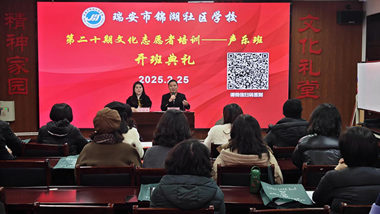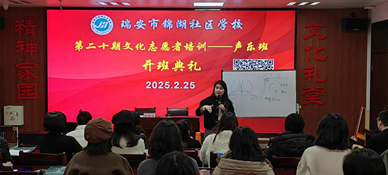 2月25日晚,瑞安市錦湖社區(qū)學(xué)校的文化禮堂燈火通明,迎來了第二十期文化志愿者聲樂班培訓(xùn)的開班典禮。此次活動(dòng)吸引了40多位熱心文化事業(yè)的學(xué)員參與,旨在通過聲樂培訓(xùn)助力鄉(xiāng)村文化振興。