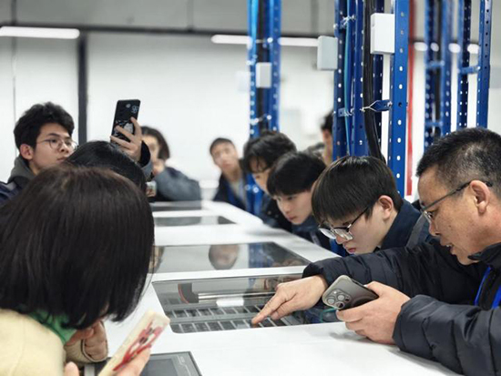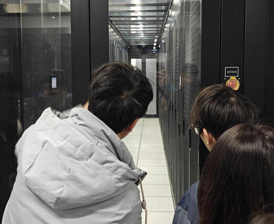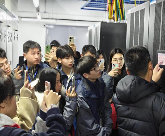 在液冷機(jī)柜前,同學(xué)們見識(shí)到了全球先進(jìn)的浸沒式液冷技術(shù),相較于傳統(tǒng)風(fēng)冷方式,散熱效率實(shí)現(xiàn)了質(zhì)的飛躍,面對一排排浸泡在特殊液體中的服務(wù)器,超強(qiáng)的視覺震撼讓學(xué)子們直呼“仿佛走進(jìn)科幻大片”,對科技進(jìn)步的力量有了更深刻的認(rèn)識(shí)。